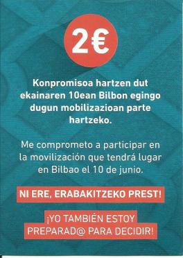 Bilboko Euskadi plazatik Plaza Eliptikoraino galdera ikur erraldoia osatuko dugu (17:30). Erabakitzeko prest leloarekin egingo dugu. Mobilizazio horren ostean Herritarron Ituna aurkeztuko da. Hartu zure konpromiso bonoa.